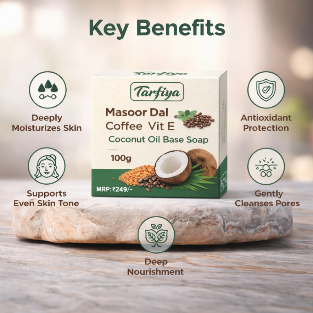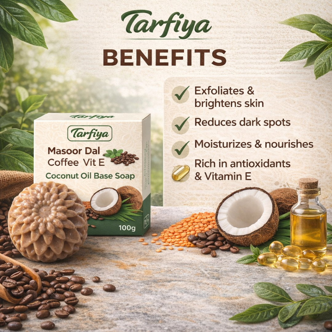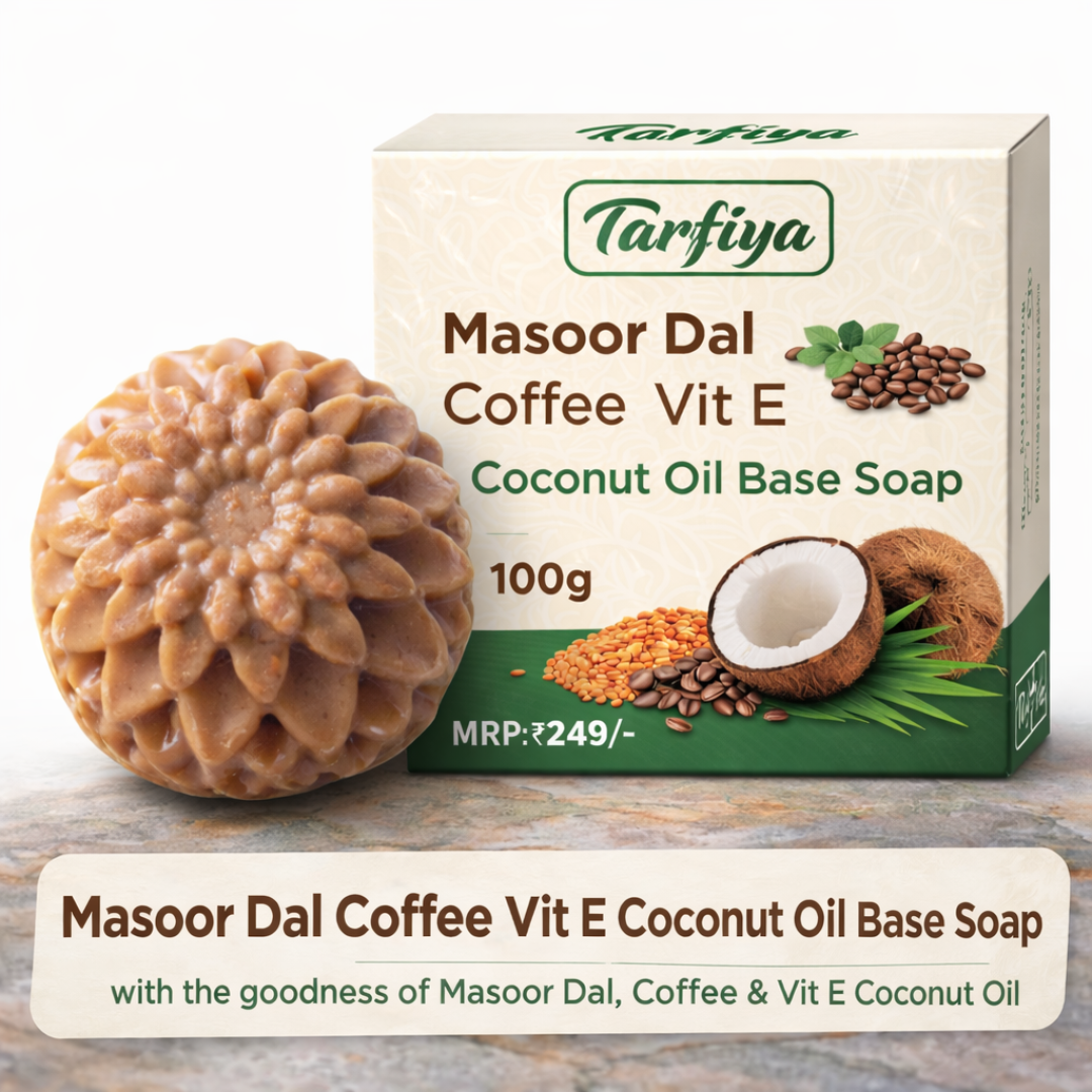 Tarfiya Herbal Masoor Dal Coffee Soap 100g – Enriched with Vitamin E & Coconut Oil | Skin Glow, Dead Skin Removal & Deep Cleansing Bath Bar